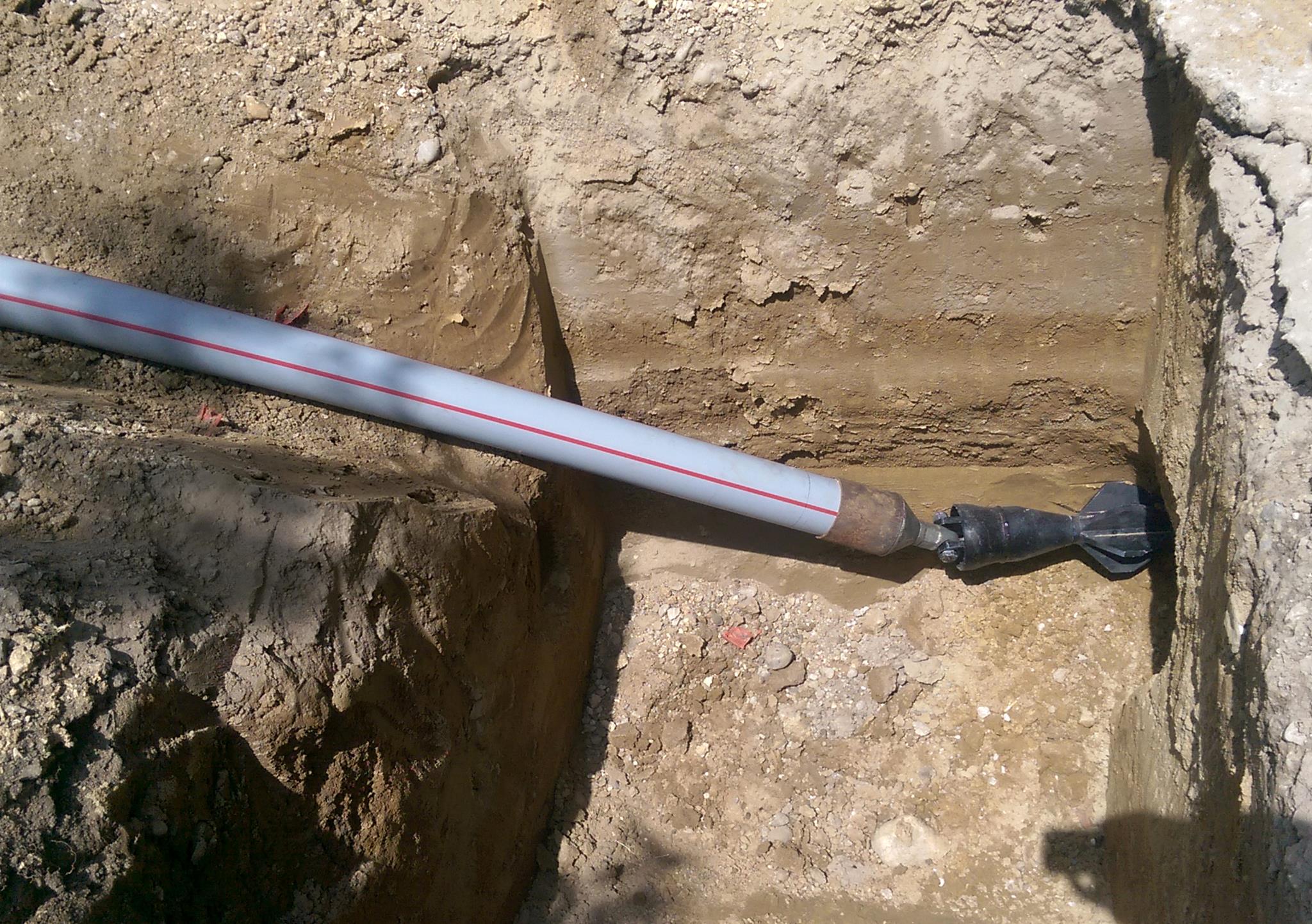 The TERRA-JACK 200 is typically used in the areas of house connections, road or garden crossings, where lengths of 30 m and more are required. With the aid of a transmitter behind the drill head, the pilot bore can be controlled. The minimum bending radius of the rods is 25 m. The bore channel can be expanded upt o 220 mm to pull in plastic pipes up to 160 mm.