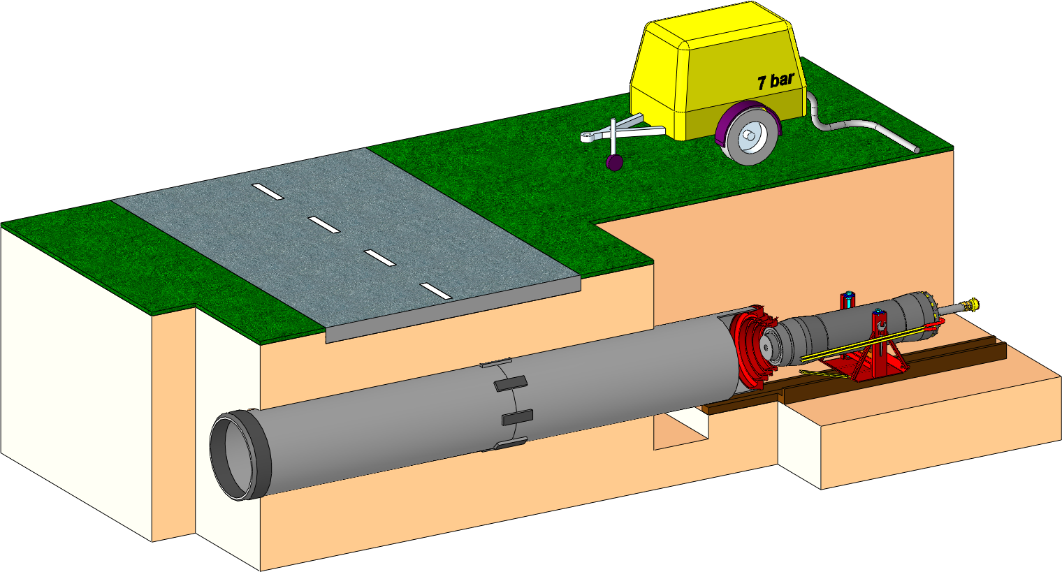 Special ram plates are offered for pipe diameters from Ø 800 mm. Ram plates are a lot lighter than the corresponding lock‐in system. The openings in between its arms allow spoil access at the back end of the steel pipe during the ramming procedure. Ram plates can be combied with larger lock‐in ram rings.